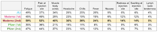 So, you are not imagining things — if you got the Moderna 2nd dose and felt “under the weather”, you are not alone. A lot of people did (nearly 1 in 5), but for 94.1% effectiveness against COVID-19, we are all applauding those of you who suffered through a few days of discomfort for your and the greater good.